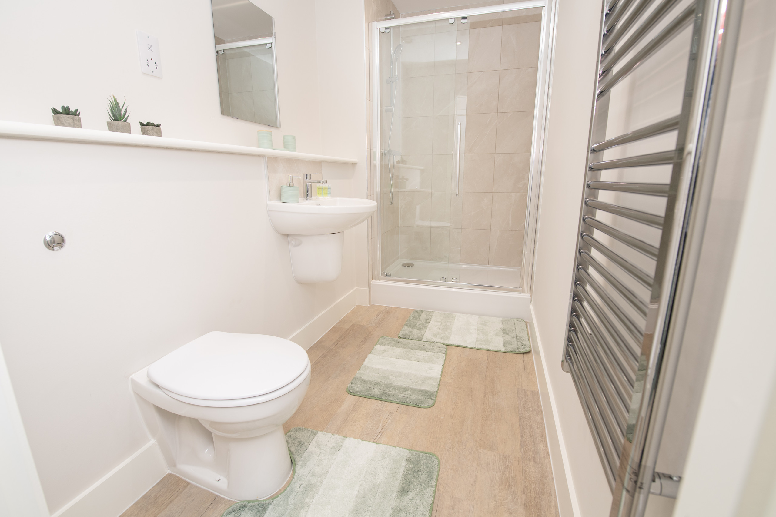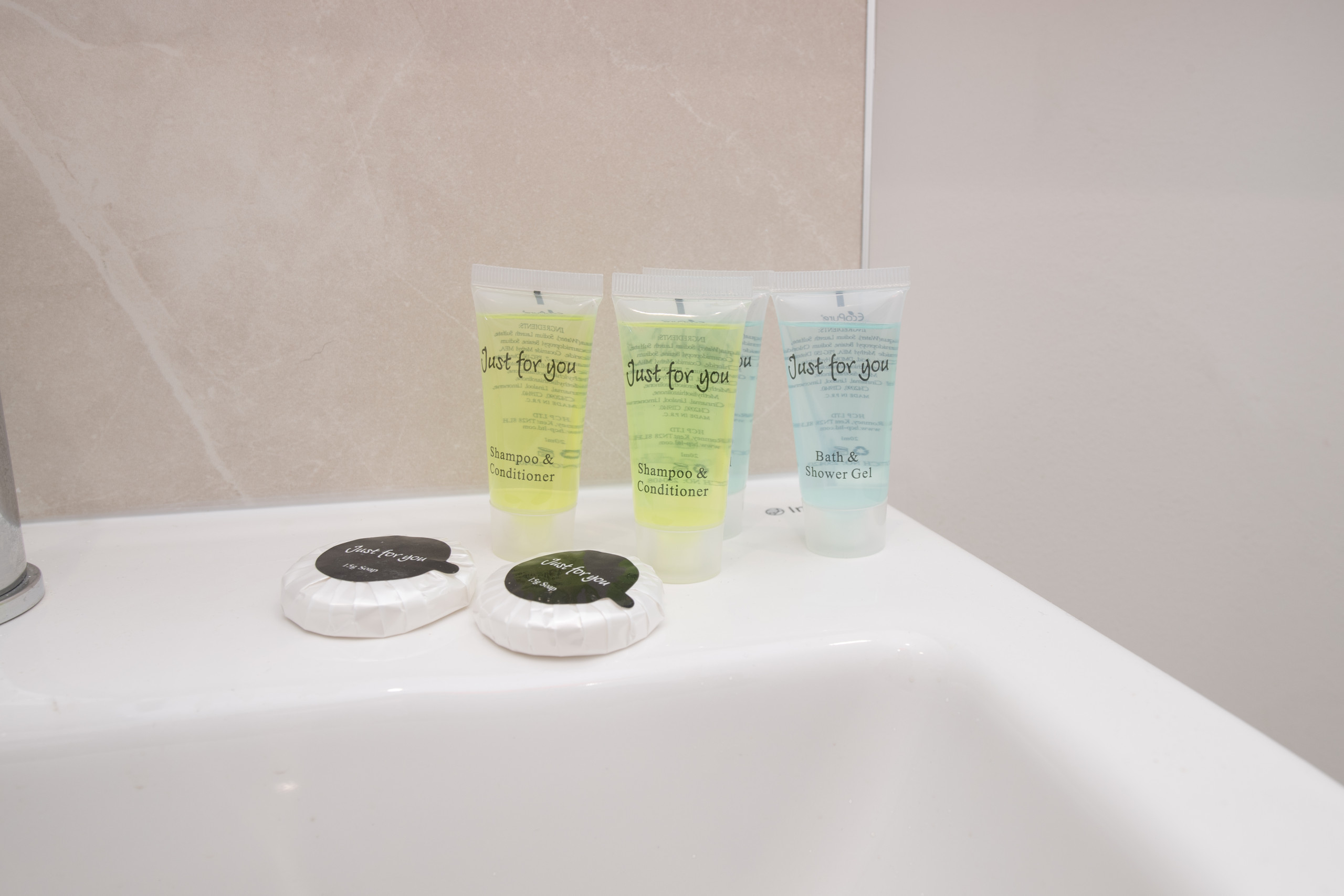 Fresh, clean, and contemporary bathroom with a walk-in shower and all essentials provided for a hassle-free stay.