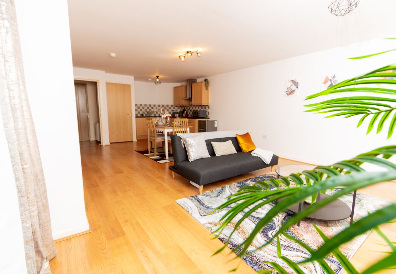 The apartment has a comfortable living area which is perfect for kicking back in and relaxing on the sofa whilst watching your favourite shows on the flat-screen smart TV.