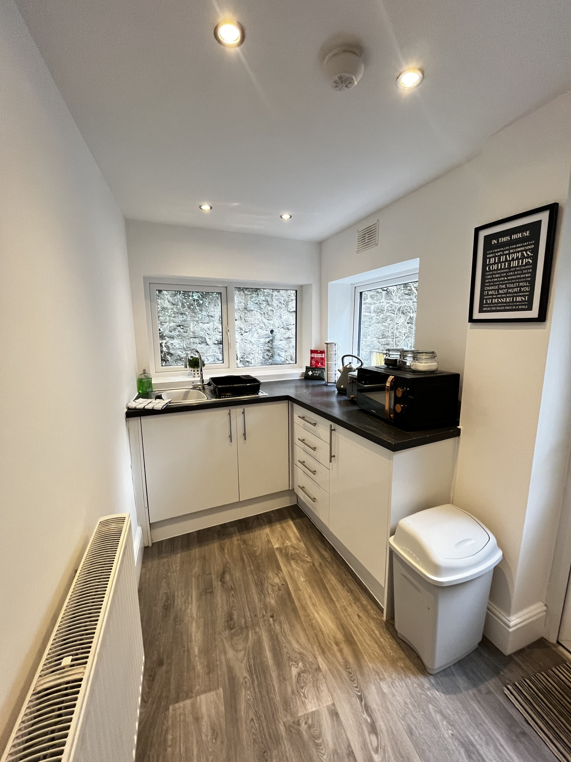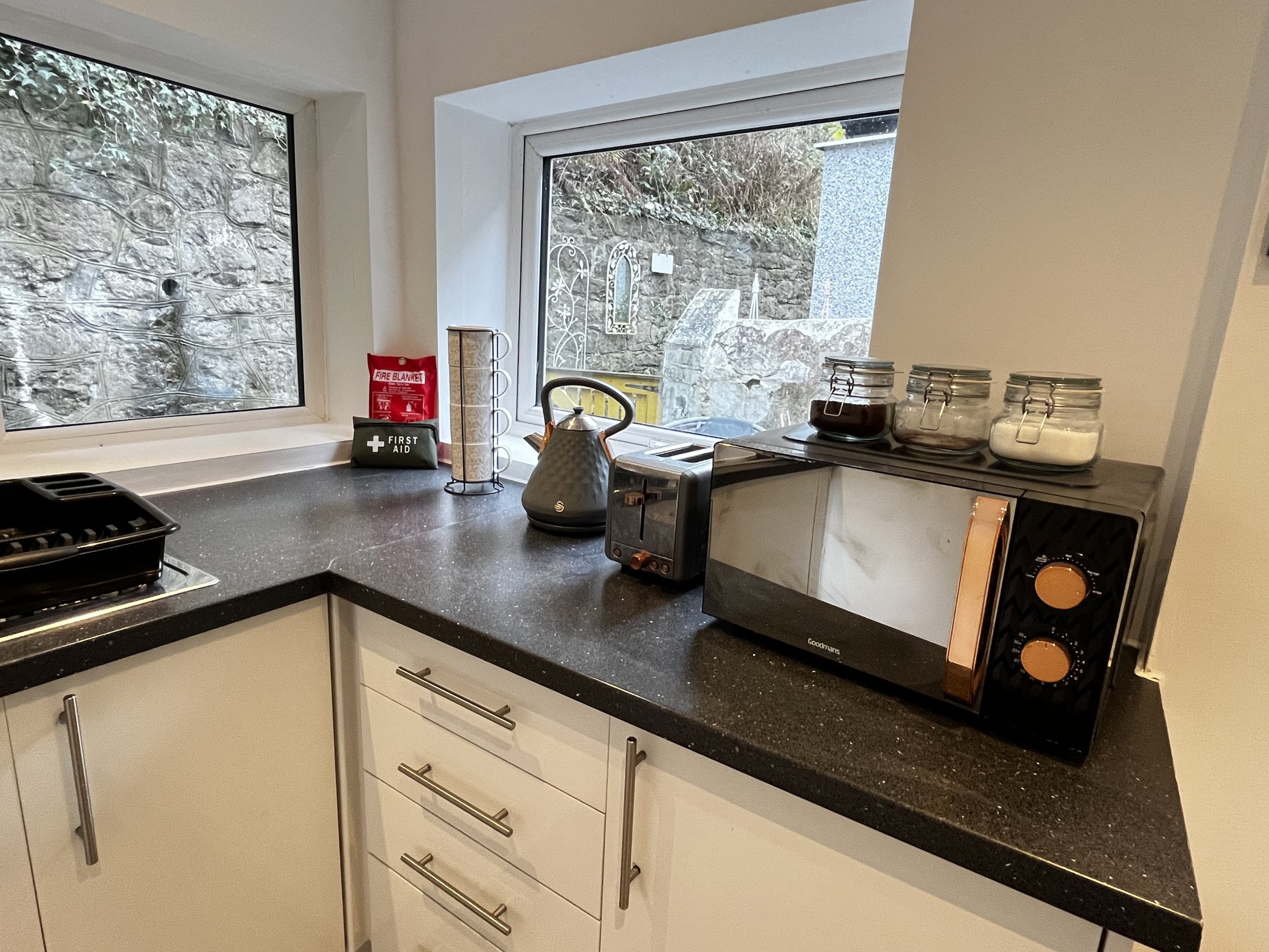 Our kitchen is fully equipped with appliances and utensils. Prepare your favourite meals or explore the diverse culinary scene that Wales has to offer. There will be some basic cleaning supplies and bin bags to get you started. The dining table is set up for you to enjoy freshly prepared meals with your friends and family. 🤤
