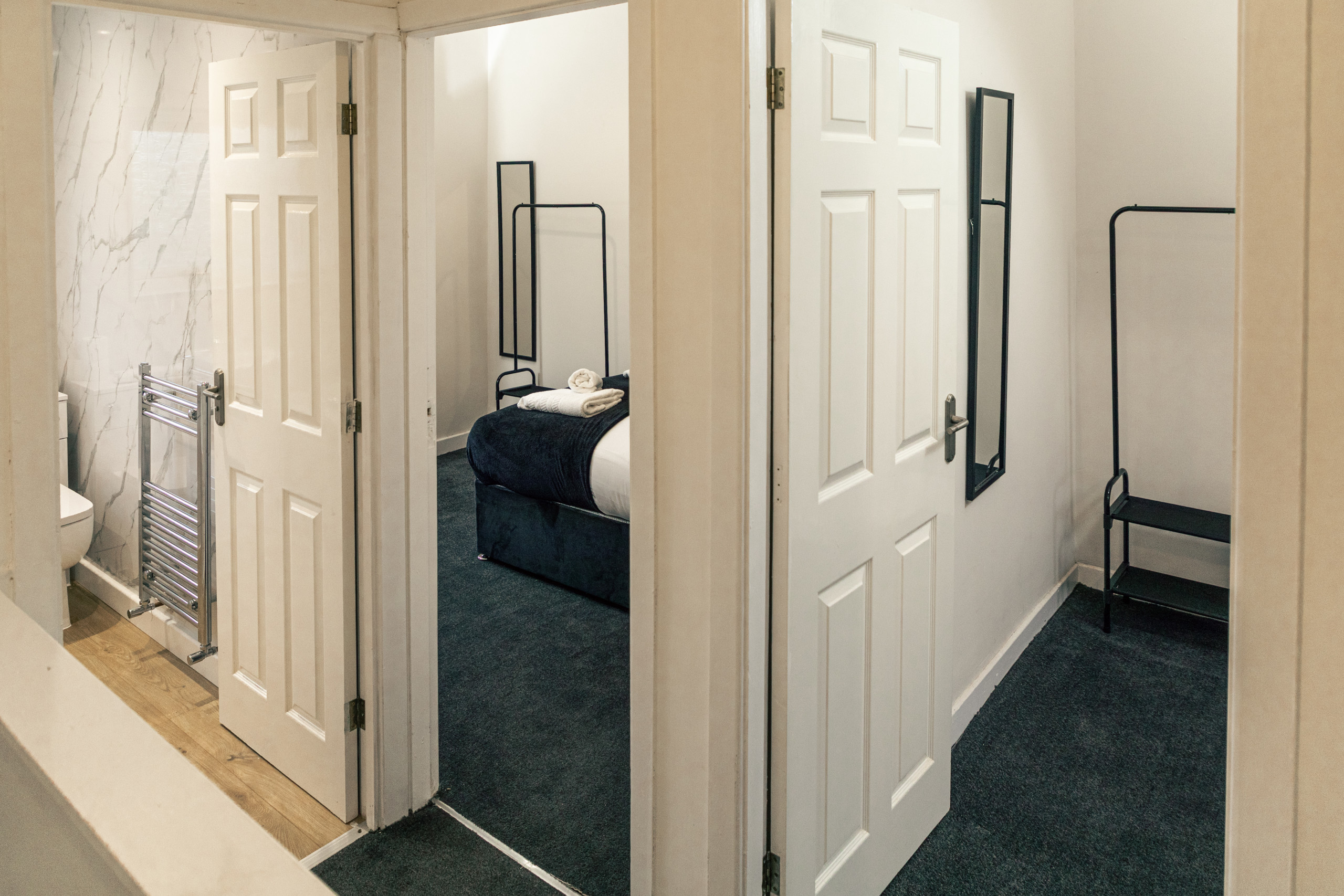 The house boasts two spacious bedrooms with stylish and comfortable beds to sink into after a long day. The bedrooms beckon with double-sized beds draped in high-quality linens. We've added personal touches to make your stay even more special, such as bedside lamps, mirror and a large wardrobe.