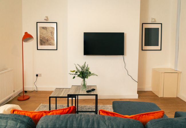 The living room features plush furnishings and tasteful decor, creating a perfect space to relax after a day of exploring the city. Kick back on the comfortable sofa and enjoy your favourite shows on the flat-screen TV. the The sofas can be converted to beds which ensures everyone has a cosy spot to sleep. It's perfect for accommodating a small group without booking additional rooms. 😉