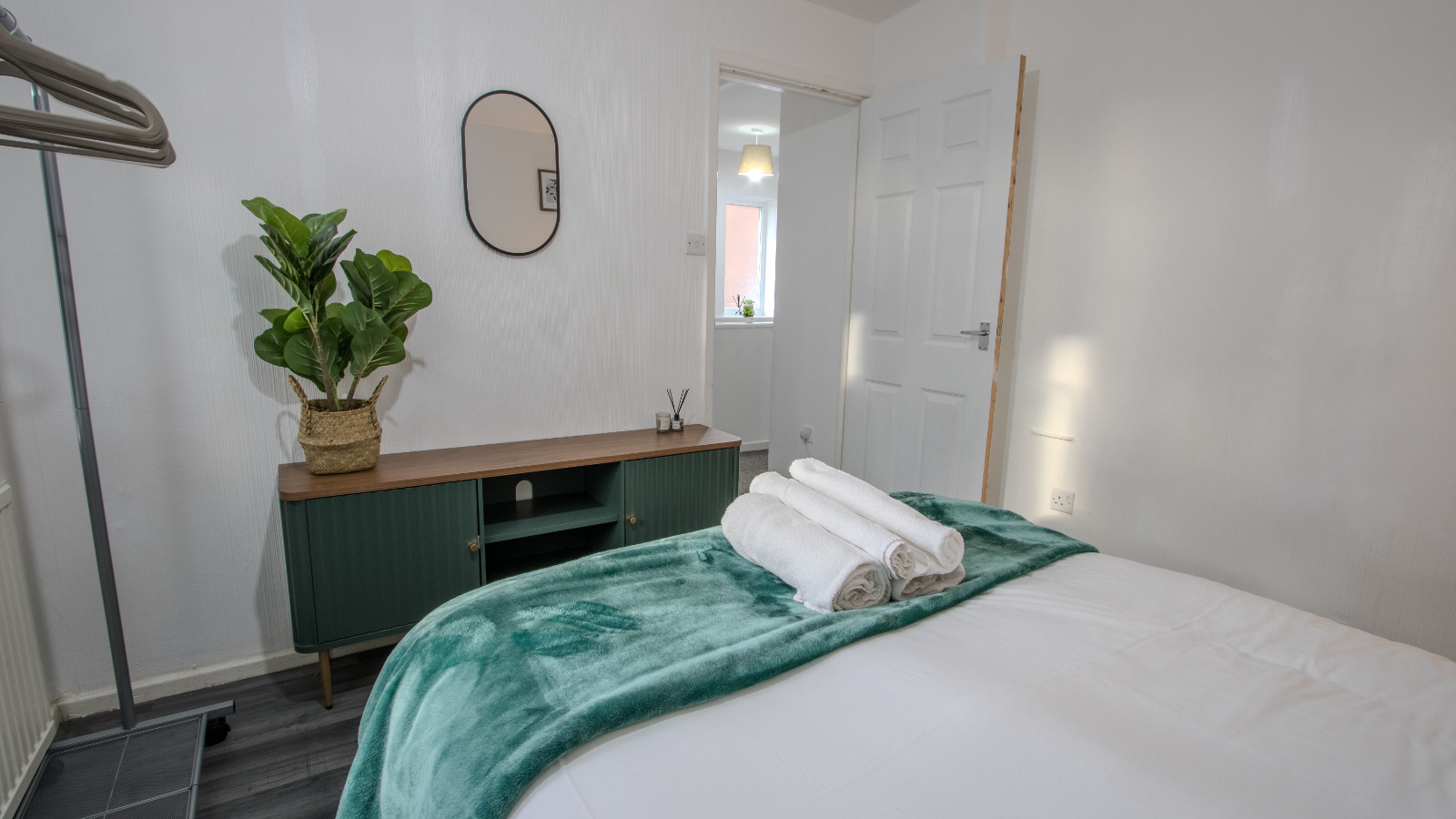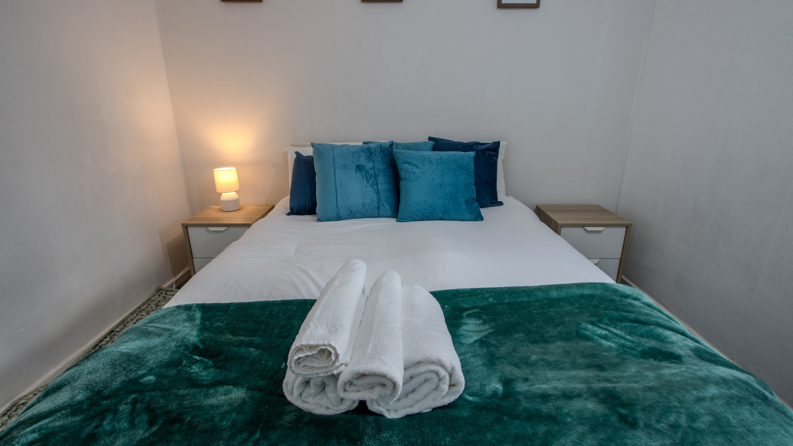 The house boasts two spacious bedrooms with stylish and comfortable beds to sink into after a long day. The bedrooms beckon with double-sized beds draped in high-quality linens. We've added personal touches to make your stay even more special, such as bedside lamps, mirror and a large wardrobe.