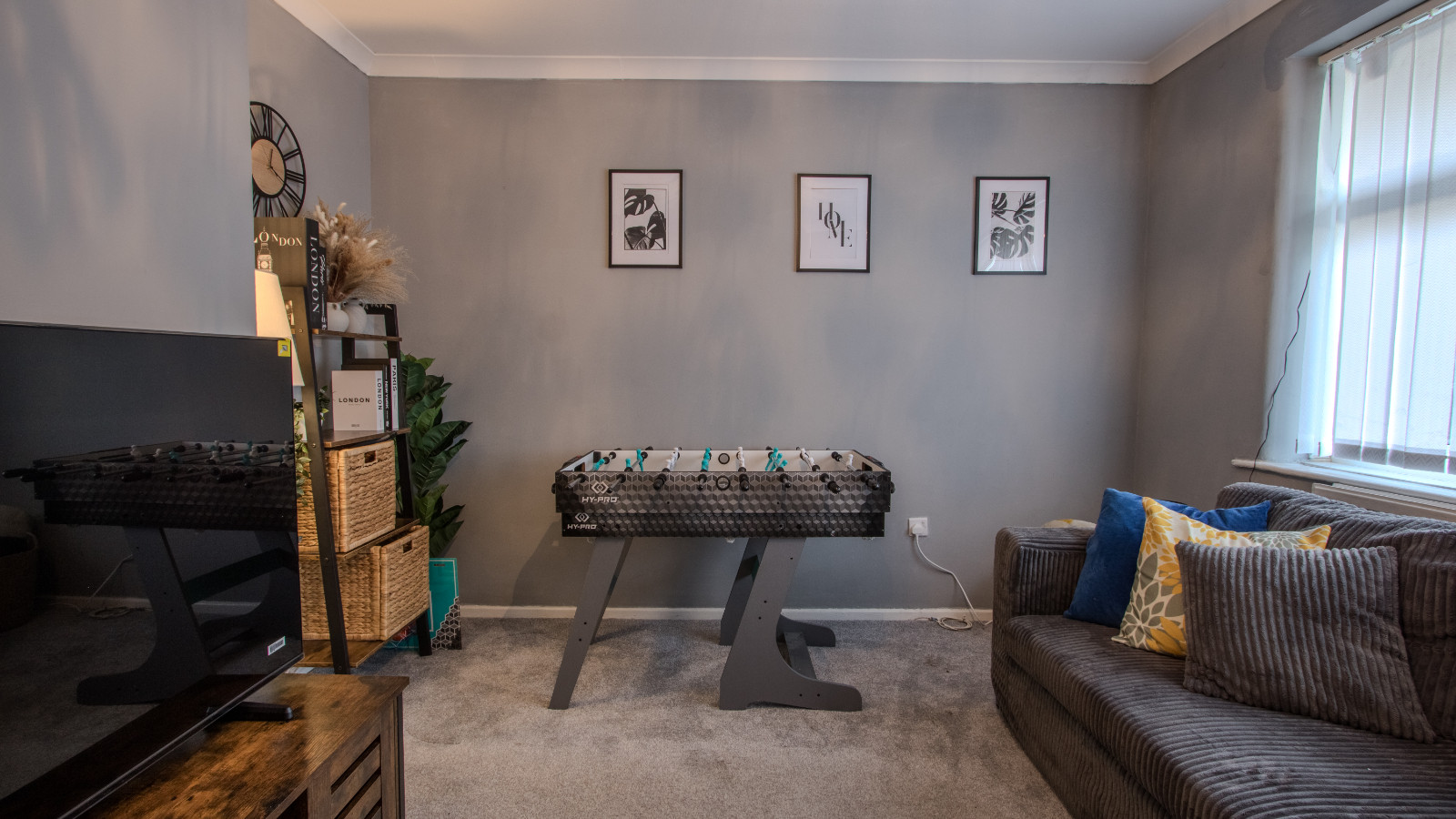 The house has a comfortable and inviting living room, perfect for kicking back in and relaxing on the sofas, watching your favourite shows on the large Smart TV. Games table and entertainment for all the family!